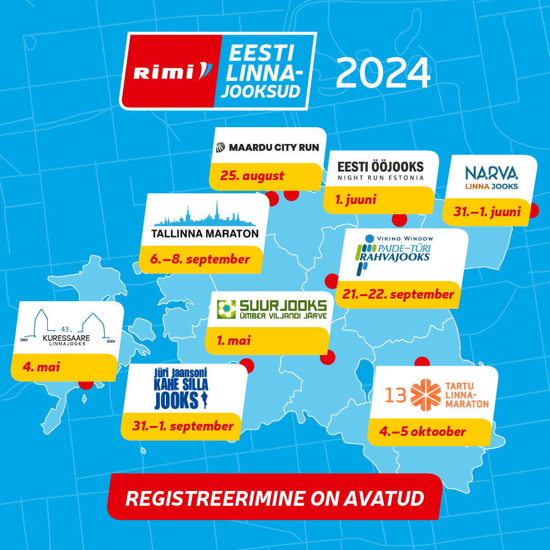 RIMI Eesti Linnajooksude sarja kuulub 2024. aastal üheksa liikumissündmust: