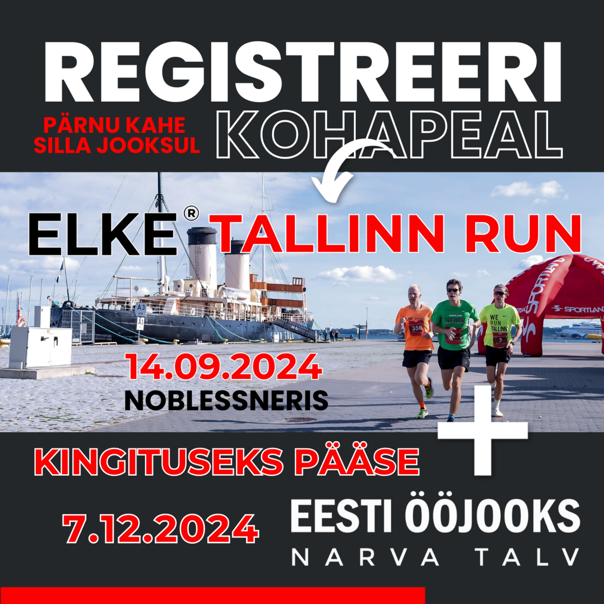 ⚡ 1. Septembril leiad Elke Tallinn Run - Noblessner 2024 telgi Pärnu Pärnu Kahe Silla klubi expol Endla teatri ees Vaasa pargis ⚡