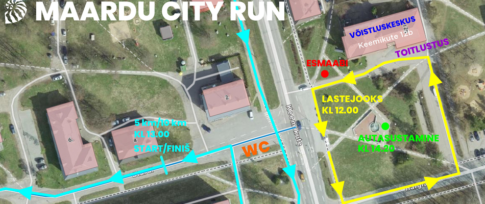 Kell 11.00 alustavad lastejooksud ning kell 12.00 5 km põhidistants, mida saab läbida nii joostes, käies kui ka kepikõndi tehes. Vaheldusrikas rada kulgeb nii asfaldil, kruusateel kui ka maastikul.